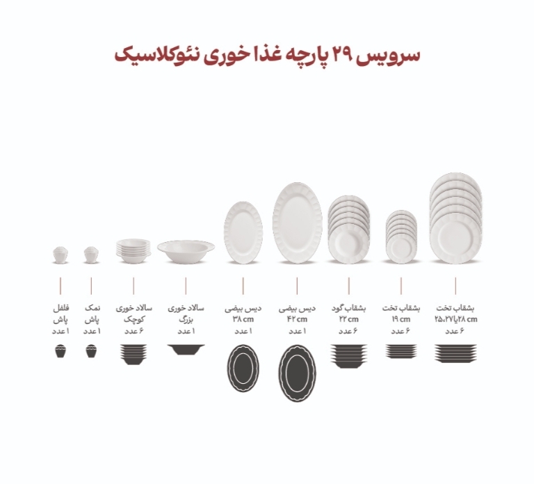 دستهبندی: سرویس غذاخوریخانواده: نئوکلاسیکمدل: فلورنتینوتعداد نفر: ۶ نفرهجنس: چینیساخت : ایراننمایش بیشتر